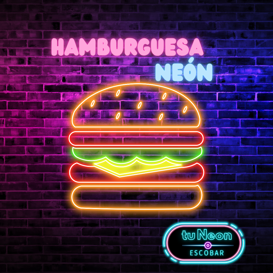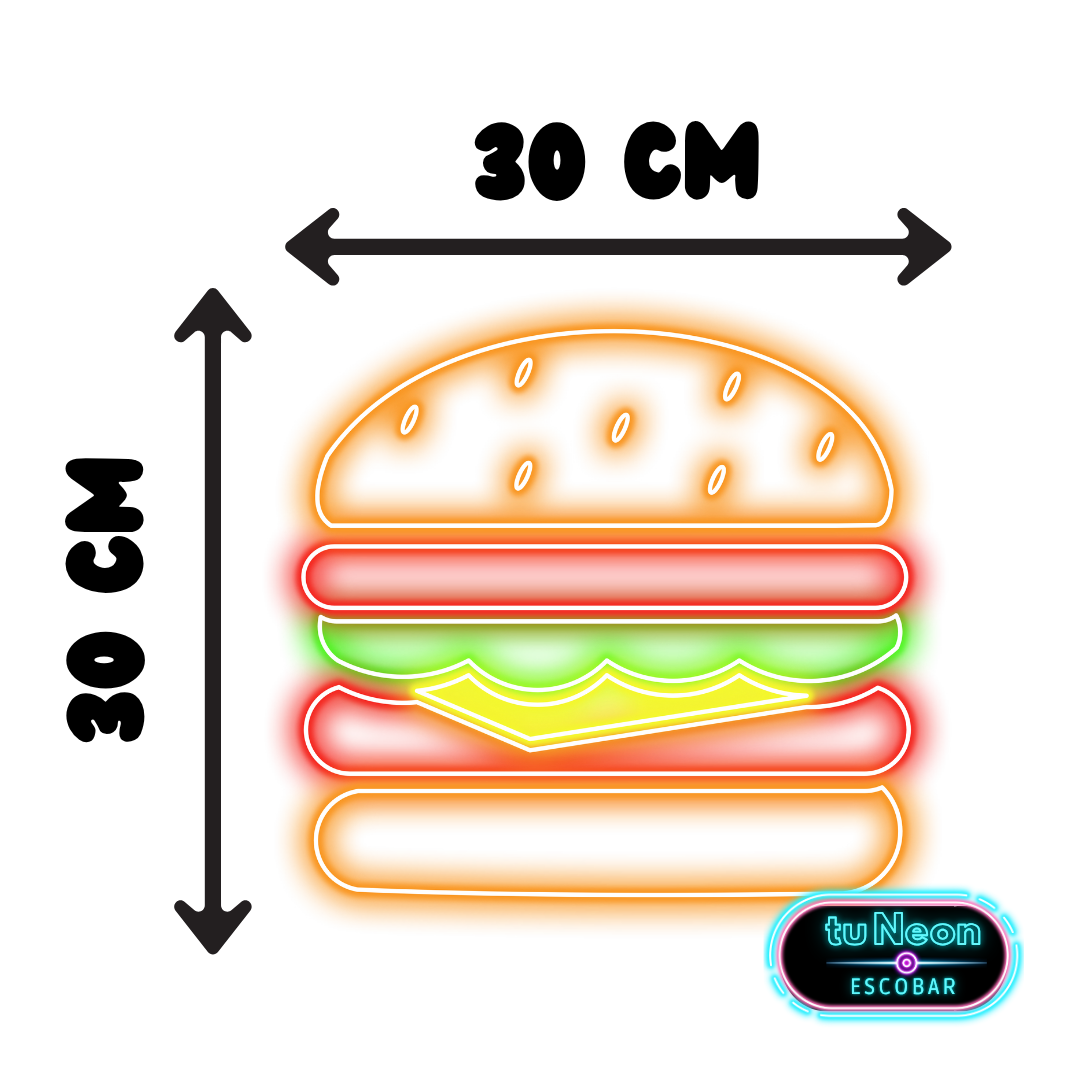 Cartel Neón Personalizado Hamburguesa 30x30 cm – Ideal para Negocios de Comida Rápida