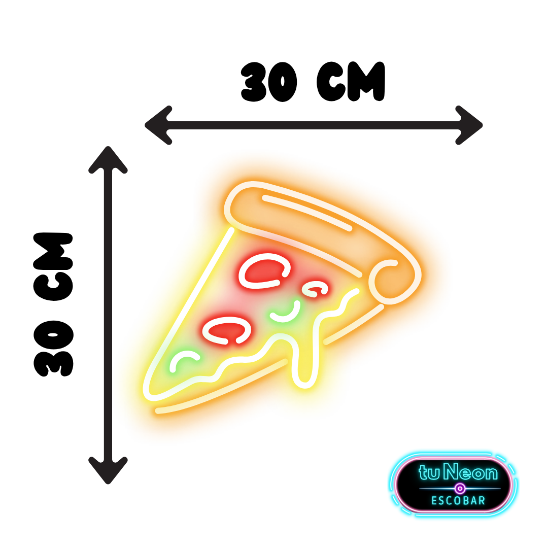 ¡Dale vida a tu local con este cartel neón personalizado de porcion de pizza! Con un tamaño compacto de 30x30 cm, es perfecto para colocar en la vidriera o frente de tu negocio de comidas rápidas y captar la atención de todos los que pasan.